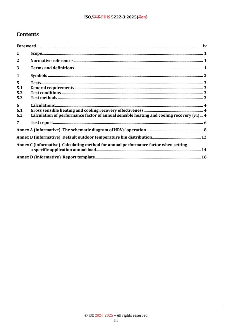 REDLINE ISO/FDIS 5222-3 - Heat recovery ventilators and energy recovery ventilators — Testing and calculating methods for performance factor — Part 3: Annual sensible heating and cooling recovery performance factors of heat recovery ventilators (HRVs) Released:10/9/2025