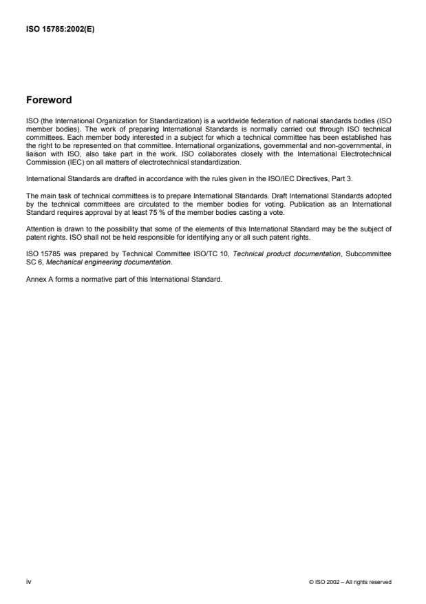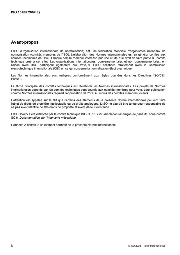 L'ISO 15785 a été élaborée par le comité technique ISO/TC 10, Documentation technique de produits, sous-comité