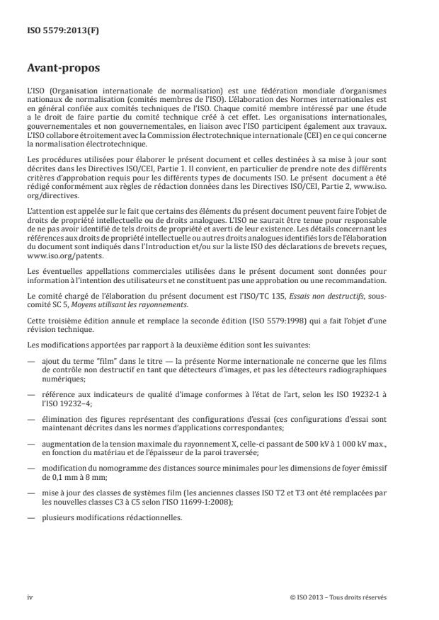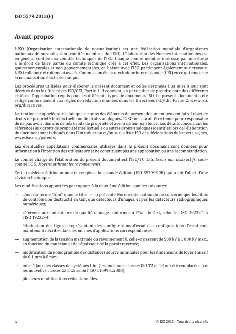L'ISO 5579:2013 expose les règles générales de la radiographie industrielle par rayons X et par rayons gamma, pour la détection de défauts au moyen de techniques utilisant un film, applicables au contrôle des produits et matériaux métalliques, mais ne fixe pas les critères d'acceptation des imperfections.