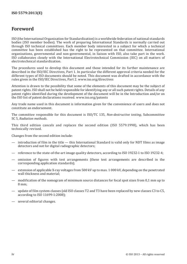 Keywords: ISO 5579:2013, radiographic testing, film radiography, NDT, X‑ray radiography, gamma radiography, image quality indicator, IQI, film systems, radiation safety.