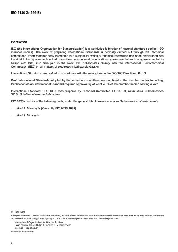 ISO 9136 consists of the following parts, under the general title Abrasive grains — Determination of bulk density: