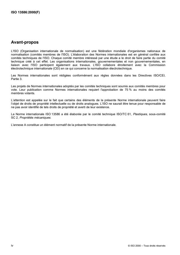 International Standard ISO 13586 was prepared by Technical Committee ISO/TC 61, Plastics, Subcommittee SC 2,