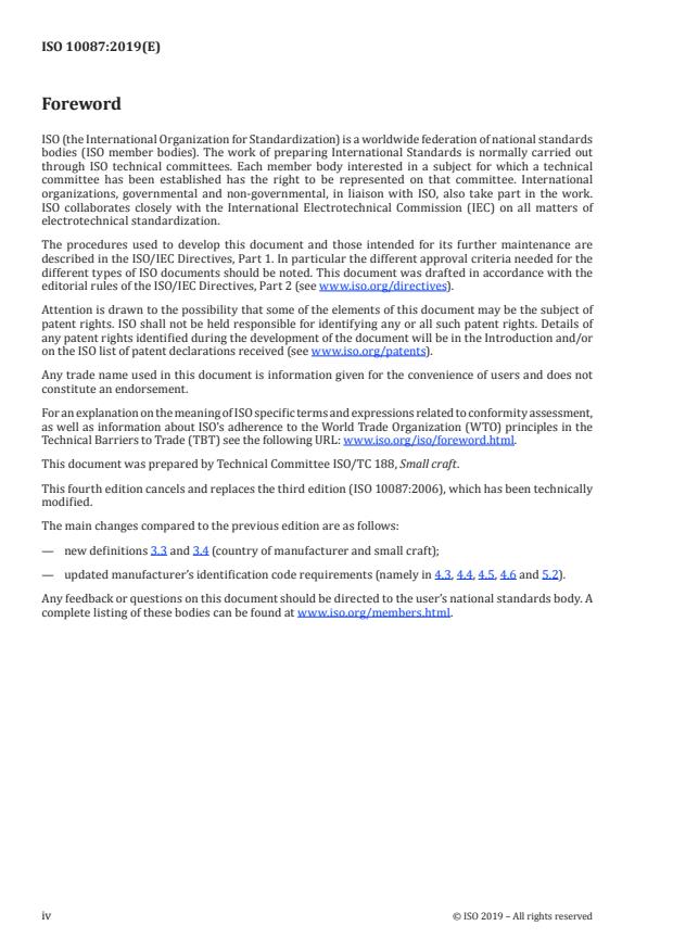 ISO 10087:2019 is a standard published by the International Organization for Standardization (ISO). Its full title is "Small craft — Craft identification — Coding system". This standard covers: This document establishes a coding system to achieve identification of any small craft in terms of: — identification code of the country of the manufacturer of the craft; — identification code of the manufacturer; — serial number; — month and year of manufacture; — model year. It applies to small craft of all types and materials, of hull length, LH, up to 24 m.