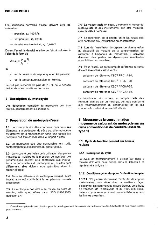 ISO 7860:1995 - Motocycles -- Méthodes de mesure de la consommation de carburant