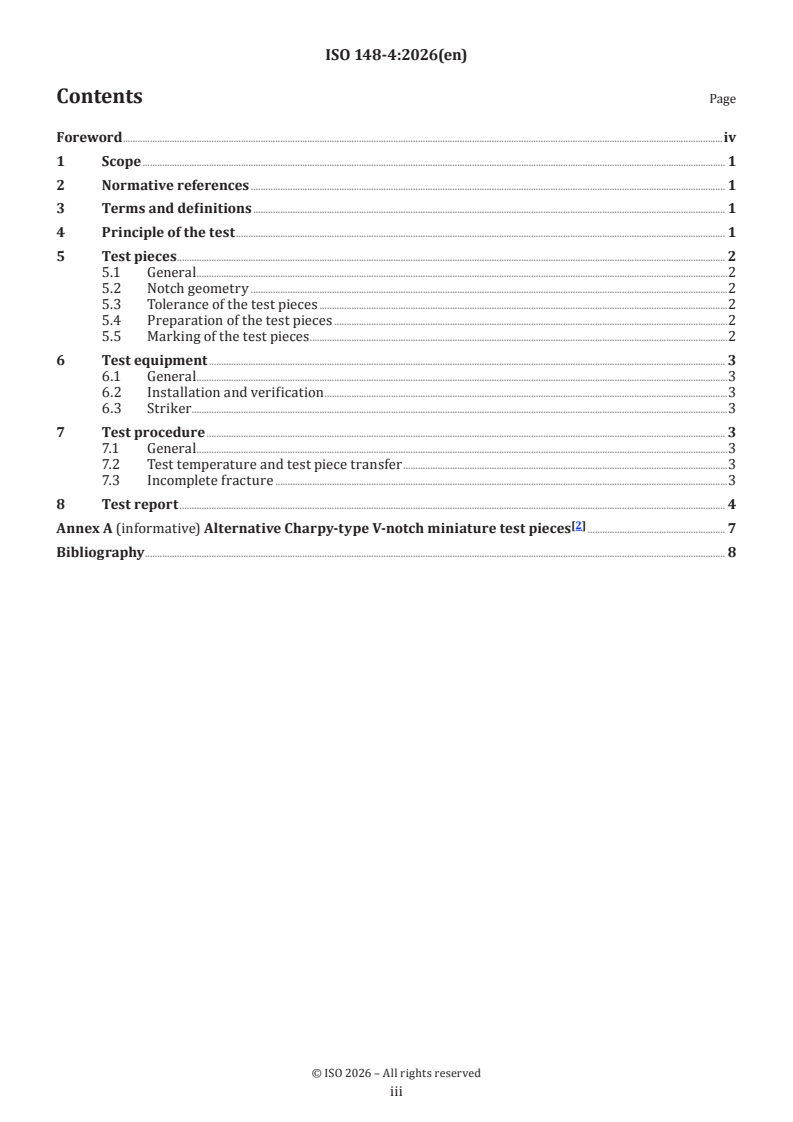 ISO 148-4:2026 - Metallic materials — Charpy pendulum impact test — Part 4: Testing of miniature Charpy-type V-notch test pieces