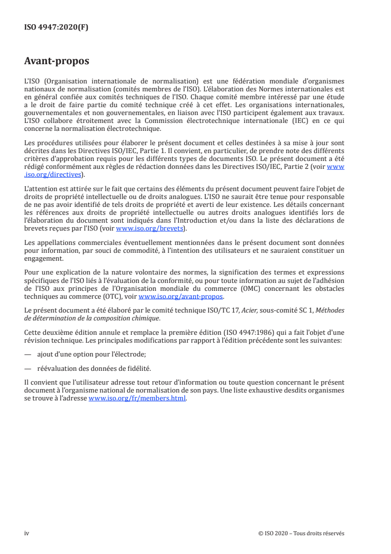ISO 4947:2020 - Acier et fonte — Détermination des teneurs en vanadium — Méthode par titrage potentiométrique Released:6/24/2020