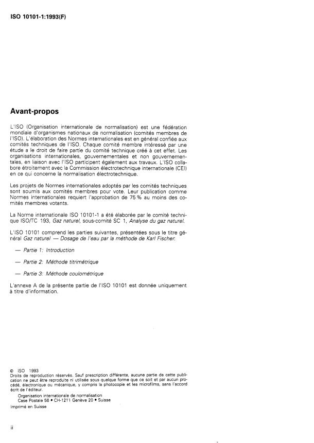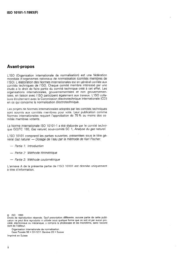 ISO 10101-1:1993 - Gaz naturel -- Dosage de l'eau par la méthode de Karl Fischer