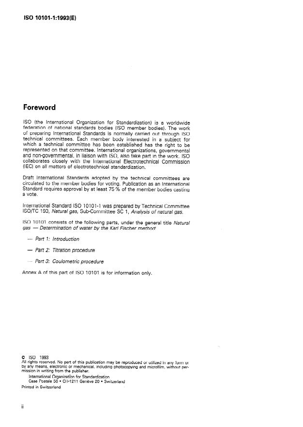 ISO 10101-1:1993 - Natural gas -- Determination of water by the Karl Fischer method