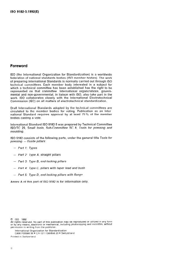 ISO 9182-5:1992 - Tools for pressing -- Guide pillars