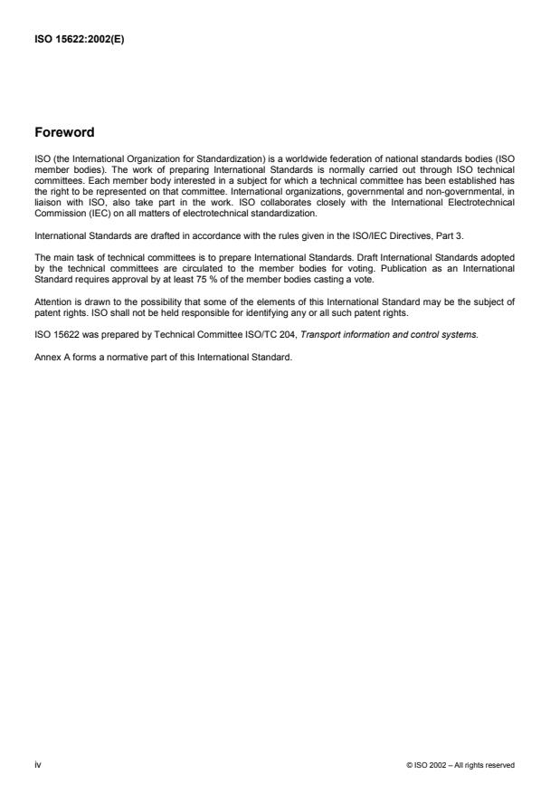 ISO 15622:2002 is classified under the following ICS (International Classification for Standards) categories: 03.220.20 - Road transport; 35.240.60 - IT applications in transport. The ICS classification helps identify the subject area and facilitates finding related standards.