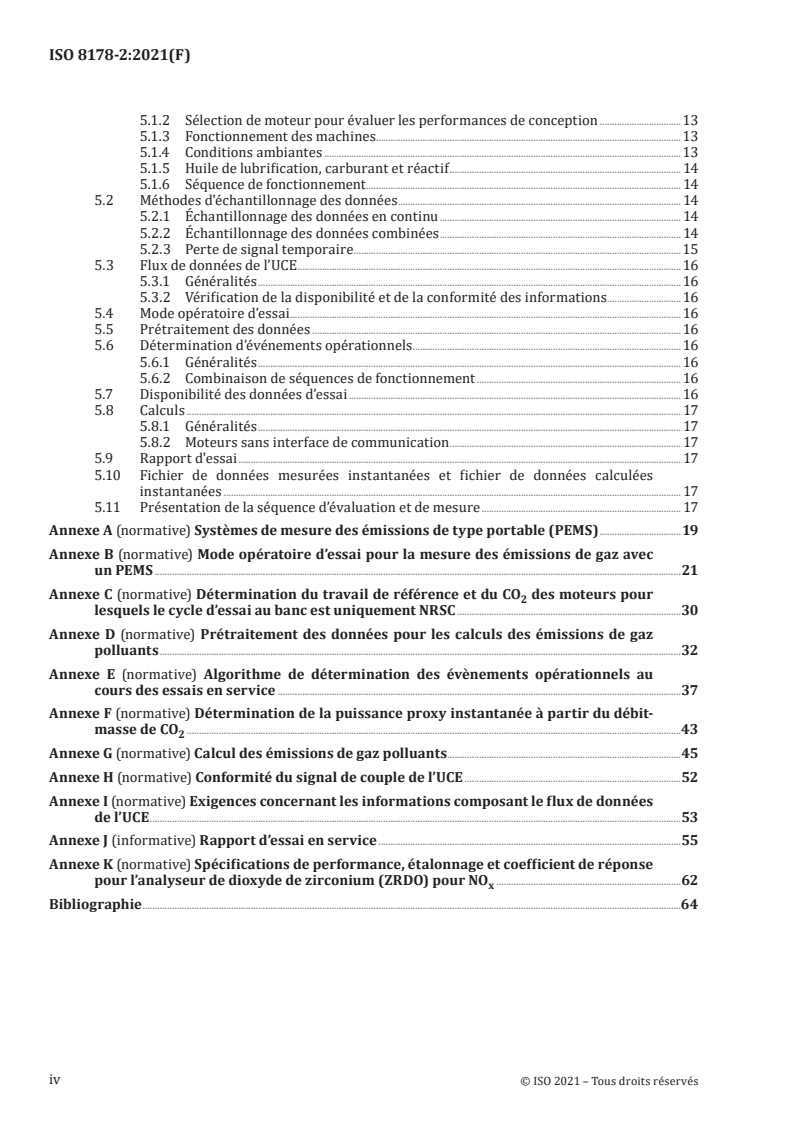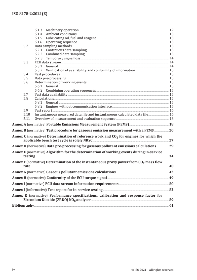 - Normative annexes (A–K): Detailed PEMS specifications, test procedures, data pre‑processing algorithms, working‑event algorithms, proxy power determination, gaseous emissions calculations, ECU torque conformity, and calibration/performance specs for key instruments.