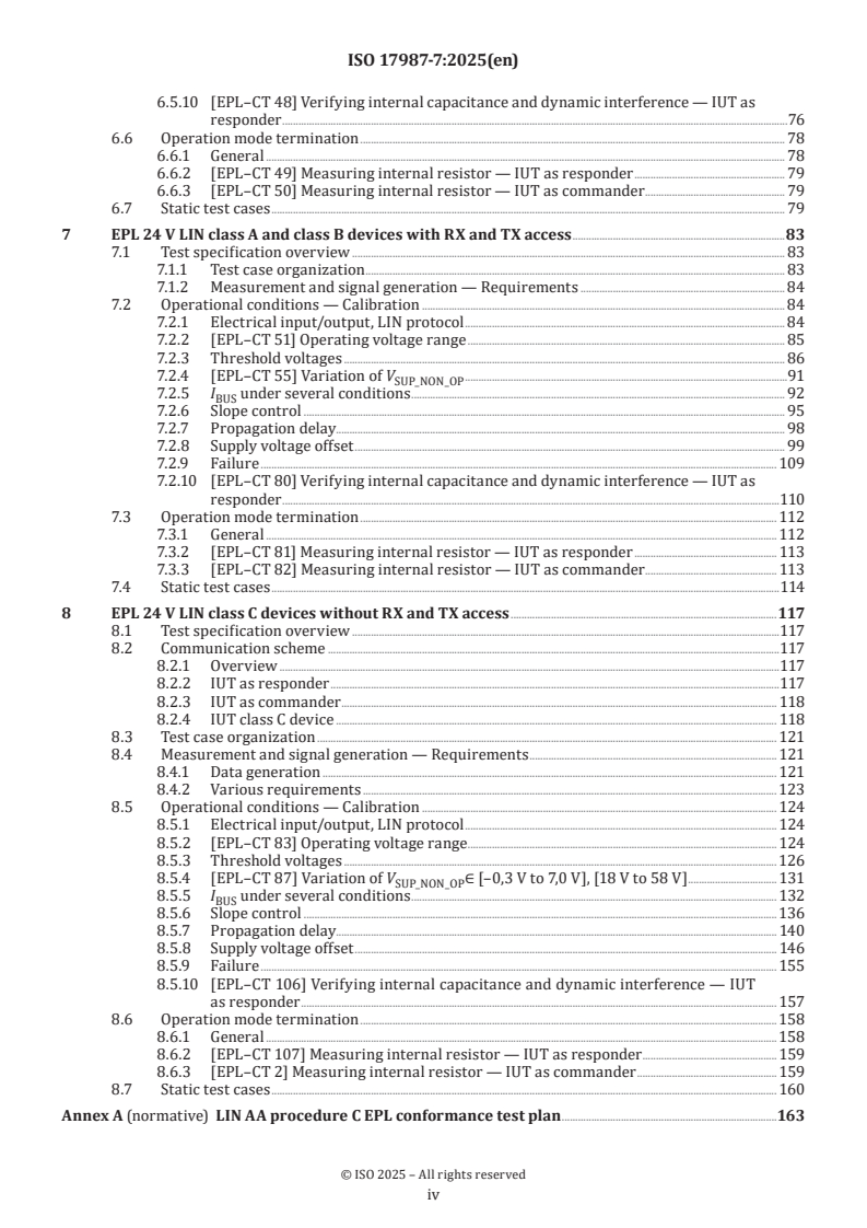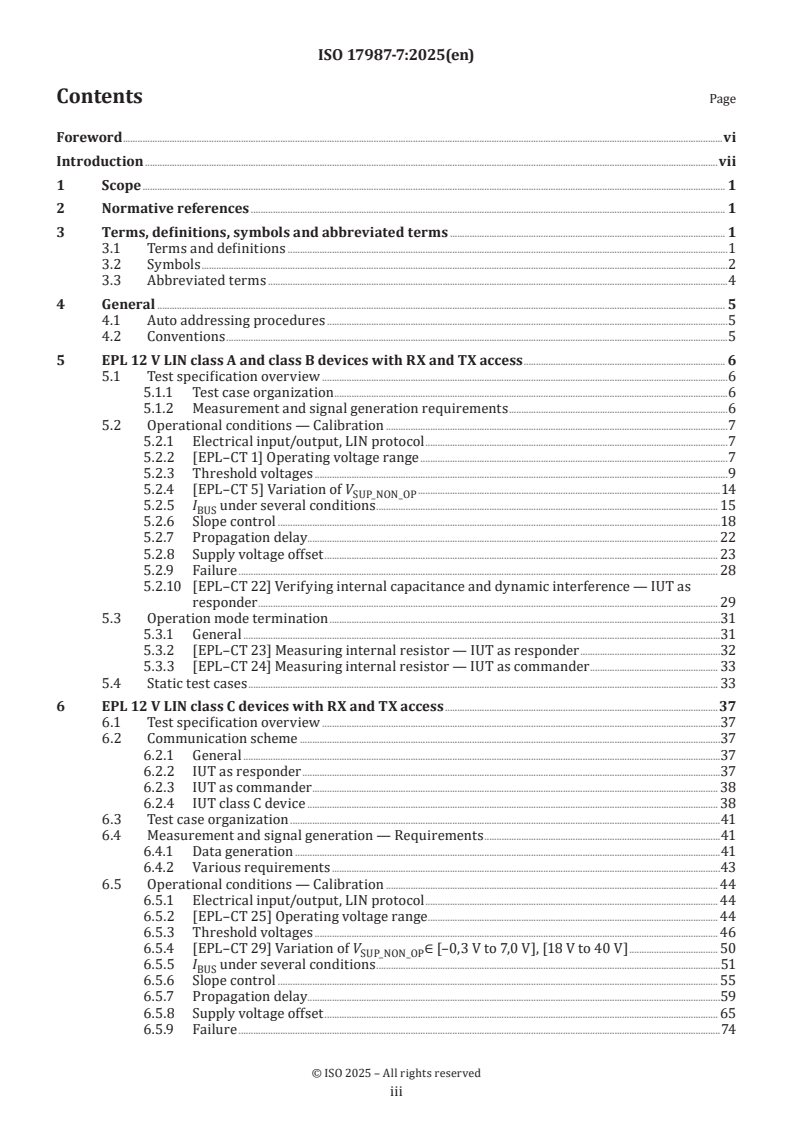 Keywords: ISO 17987-7:2025, LIN, Local Interconnect Network, Electrical Physical Layer (EPL), conformance test, LIN bus driver, interoperability, EPL 12 V, EPL 24 V, test specification.