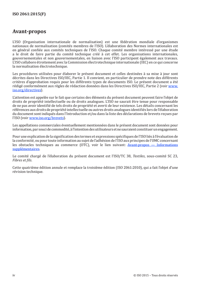 ISO 2061:2015 - Textiles — Détermination de la torsion des fils — Méthode par comptage direct/29/2015