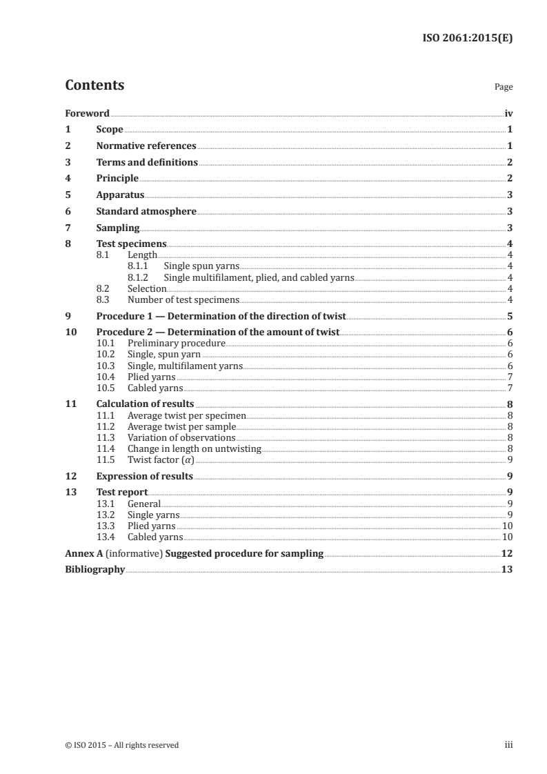 ISO 2061:2015 - Textiles -- Determination of twist in yarns -- Direct counting method