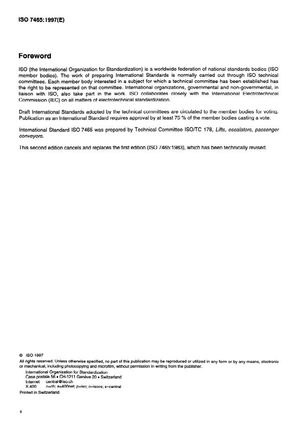 International Standard IS0 7465 was prepared by Technical Committee ISOmC 178, Lifts, escalators, passenger