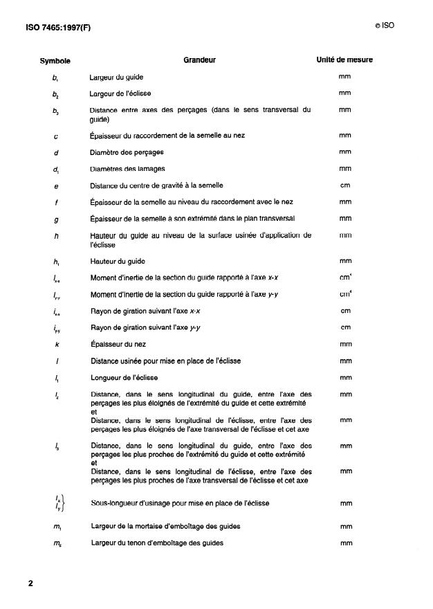Tableau 2 - Dimensions des guides