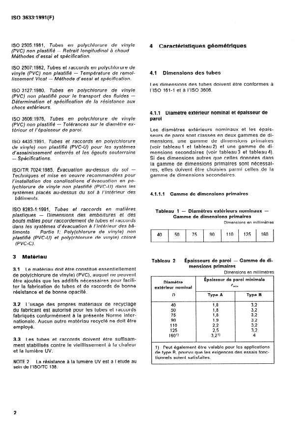 ISO 3633:1991 - Tubes et raccords en poly(chlorure de vinyle) non plastifié (PVC-U) pour les systemes d'évacuation d'eaux usées et d'eaux-vannes (a basse et a haute température) a l'intérieur des bâtiments -- Spécifications