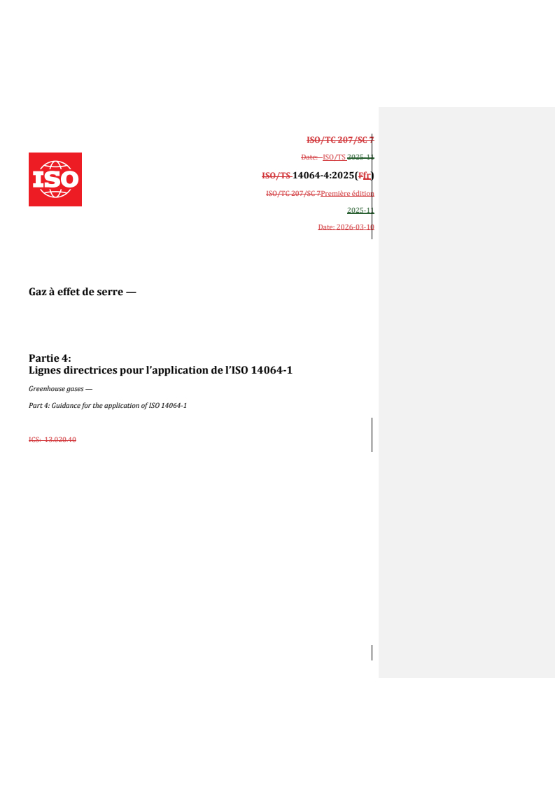 REDLINE ISO/TS 14064-4:2025 - Gaz à effet de serre — Partie 4: Lignes directrices pour l’application de l’ISO 14064-1