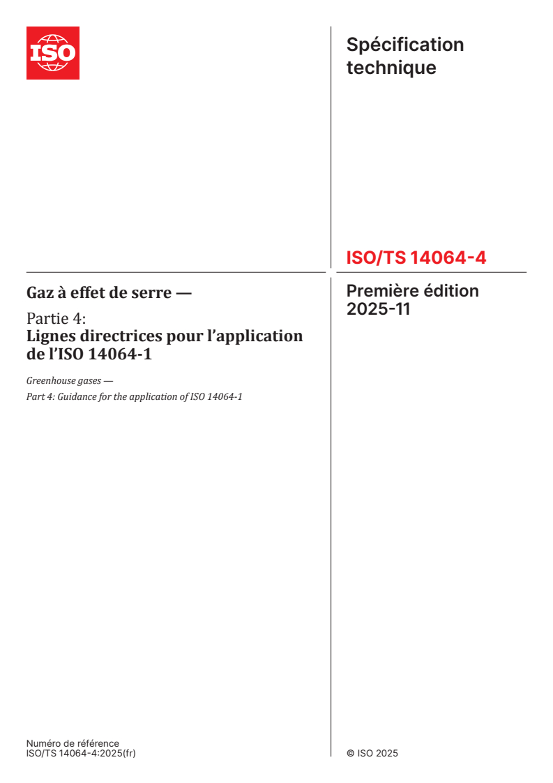 ISO/TS 14064-4:2025 - Greenhouse gases — Part 4: Guidance for the application of ISO 14064-1 Released:11/25/2025