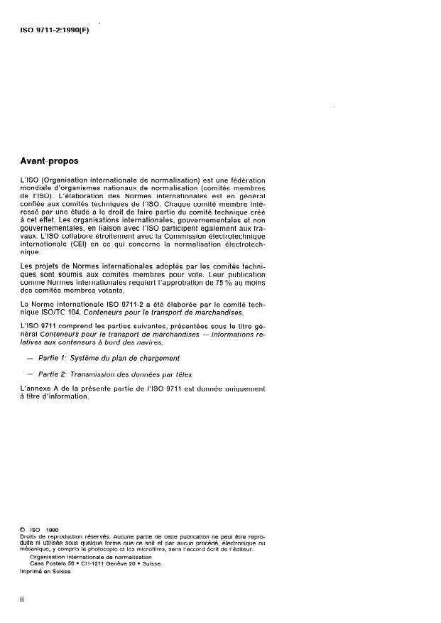 ISO 9711-2:1990 - Conteneurs pour le transport de marchandises -- Informations relatives aux conteneurs a bord des navires