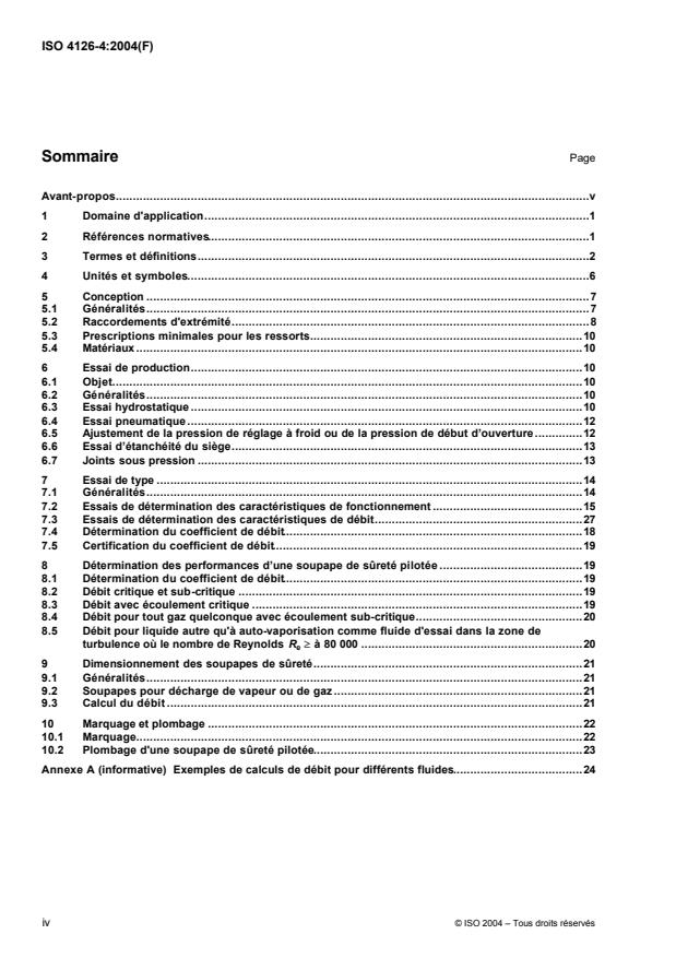 L'ISO 4126-4:2003 spécifie les prescriptions générales des soupapes de sûreté pilotées, autres que celles couvertes par l'ISO 4126-1, quel que soit le fluide pour lequel elles sont conçues. Dans tous les cas le fonctionnement est assuré par le fluide contenu dans le système à protéger. L'ISO 4126-4:2003 est applicable aux soupapes de sûreté pilotées présentant un orifice d'écoulement de diamètre supérieur ou égal à 6 mm qui sont utilisables à des pressions de début d'ouverture de 0,1 bar effectif et au-dessus. Aucune limitation en température n'est fixée. Il s'agit d'une norme de produit et elle ne s'adresse pas aux applications de soupapes de sûreté pilotées.