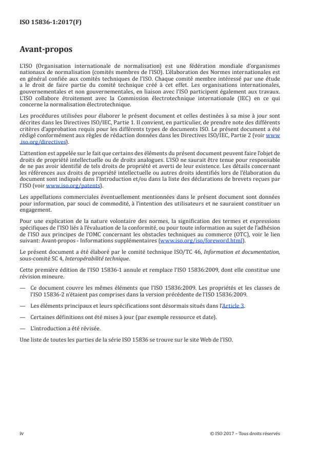 Cette première édition de l’ISO 15836-1 annule et remplace l’ISO 15836:2009, dont elle constitue une