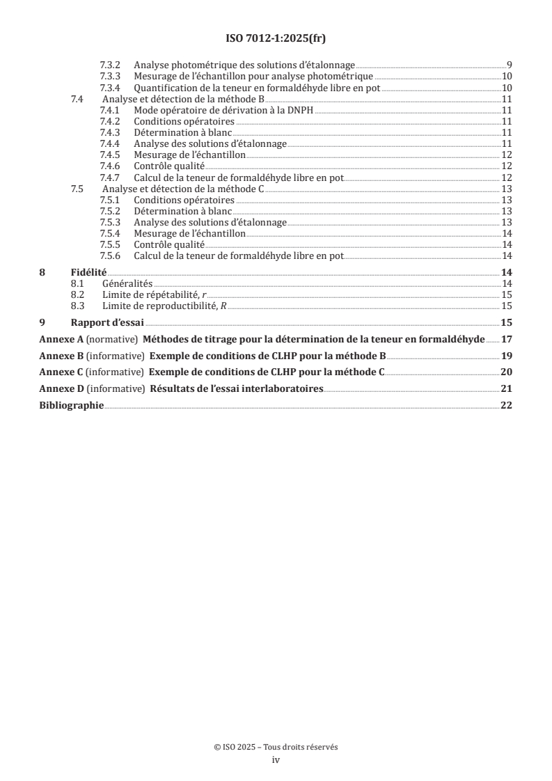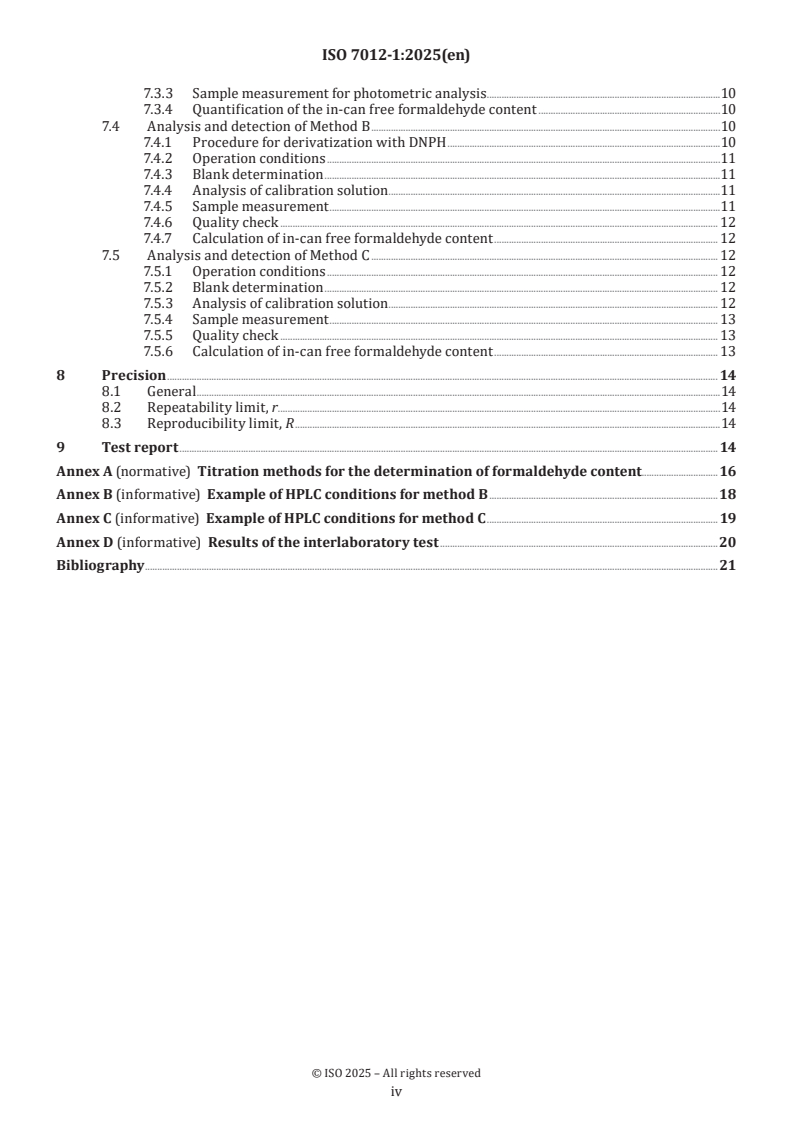 - Supporting material: Normative annex on titration methods for formaldehyde standards and informative annexes with example HPLC conditions and interlaboratory test results.