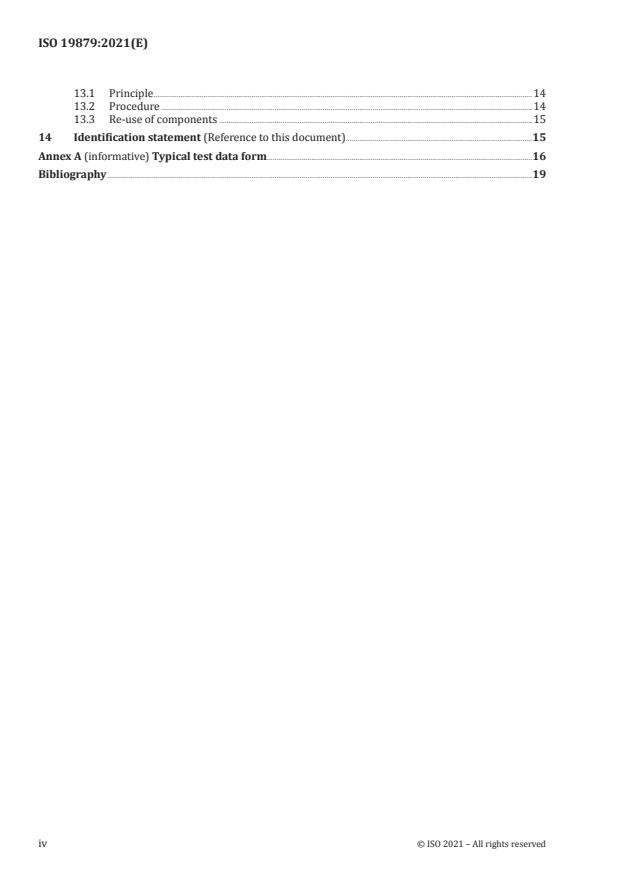 - Requires clear test reports and identification statements referencing ISO 19879.