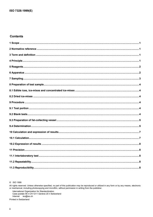ISO 7328:1999 - Milk-based edible ices and ice mixes -- Determination of fat content -- Gravimetric method (Reference method)