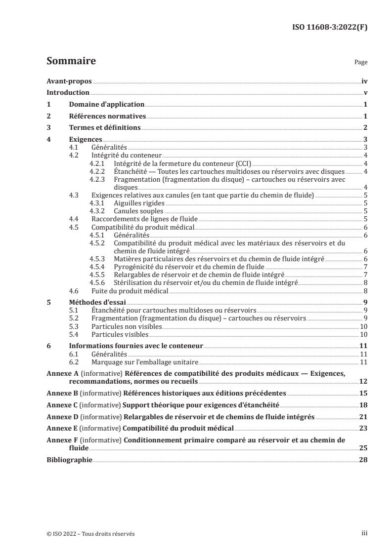 ISO 11608-3:2022 - Systèmes d'injection à aiguille pour usage médical — Exigences et méthodes d'essai — Partie 3: Conteneurs et chemins de fluide intégrés Released:1/12/2023