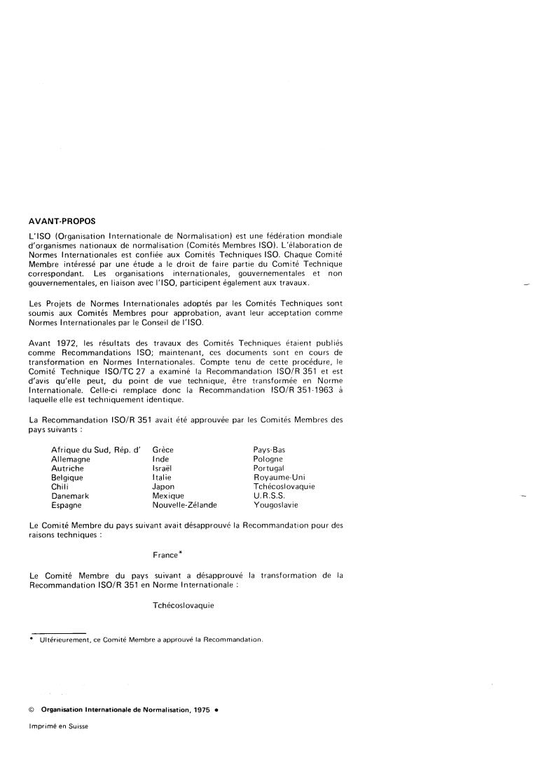 La Recommandation ISO/R 351 avait été approuvée par les Comites Membres des