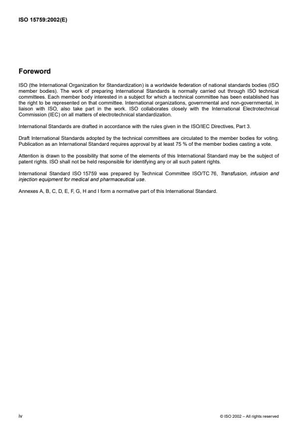 International Standard ISO 15759 was prepared by Technical Committee ISO/TC 76, Transfusion, infusion and