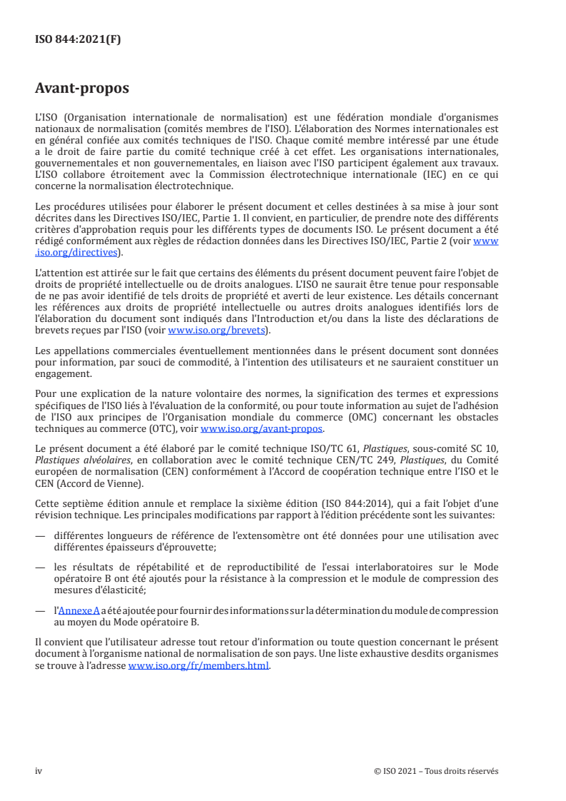 ISO 844:2021 - Plastiques alvéolaires rigides — Détermination des caractéristiques de compression Released:4/6/2021