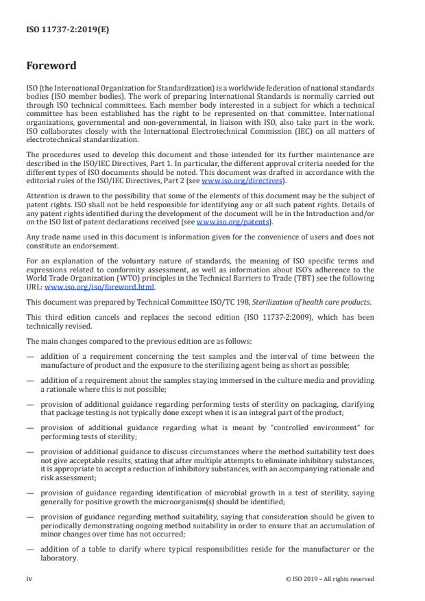 ISO 11737-2:2019 is a standard published by the International Organization for Standardization (ISO). Its full title is "Sterilization of health care products — Microbiological methods — Part 2: Tests of sterility performed in the definition, validation and maintenance of a sterilization process". This standard covers: 1.1 This document specifies the general criteria for tests of sterility on medical devices that have been exposed to a treatment with the sterilizing agent which has been reduced relative to that anticipated to be used in routine sterilization processing. These tests are intended to be performed when defining, validating or maintaining a sterilization process. 1.2 This document is not applicable to: a) sterility testing for routine release of product that has been subjected to a sterilization process, b) performing a test for sterility (see 3.12), NOTE 1 The performance of a) or b) is not a requirement of ISO 11135, ISO 11137-1, ISO 11137-2, ISO 14160, ISO 14937, ISO 17665-1 or ISO 20857. c) test of sterility or test for sterility for demonstration of product shelf life, stability and/or package integrity, and d) culturing of biological indicators or inoculated products. NOTE 2 Guidance on culturing biological indicators is included in ISO 11138-7.
