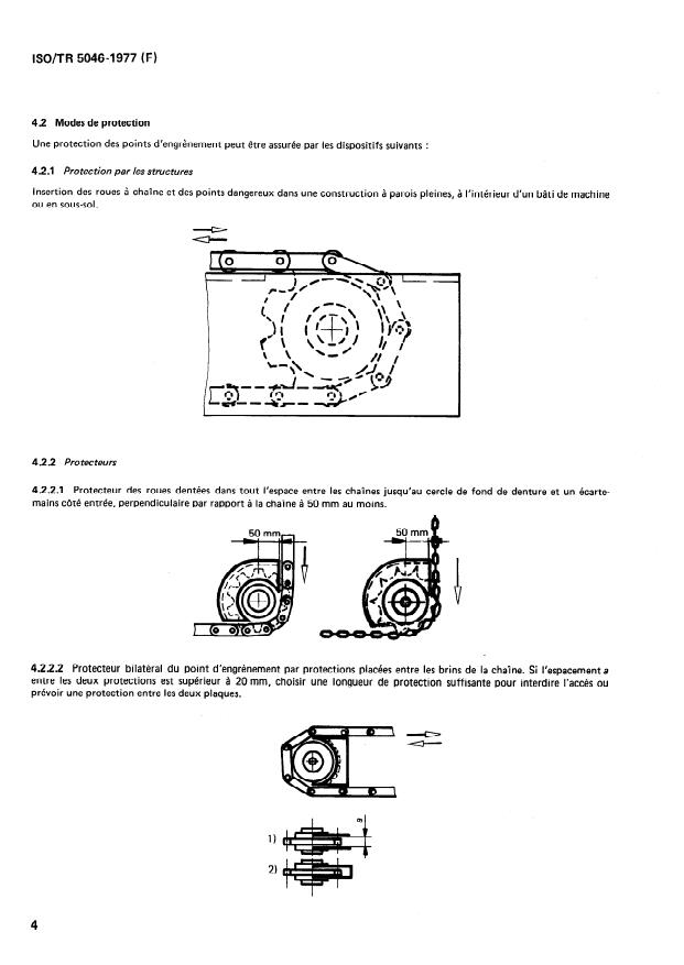 4.2.2.2 Protecteur bilatéral du point d’engrènement par protections placées entre les brins de la chaîne. Si l’espacement a