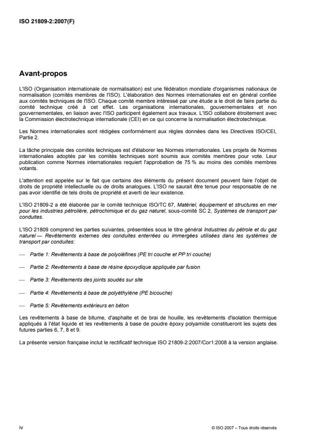 L'ISO 21809-2:2007 spécifie les exigences relatives à la qualification, l'application, les essais et la manutention des matériaux pour l'application en usine des revêtements monocouche à base de résine époxydique appliquée par fusion, appliqués extérieurement pour assurer la protection contre la corrosion des tubes nus en acier, utilisés dans les systèmes de transport par conduites pour les industries du pétrole et du gaz naturel tels que définis dans l'ISO 13623. Les revêtements hautes températures, avec une température de transition vitreuse supérieure à 120 °C, ou les revêtements primaires à base de FBE, destinés aux revêtements tricouche ou multicouche de polyéthylène ou de polypropylène, ne sont pas couverts par l'ISO 21809-2:2007.