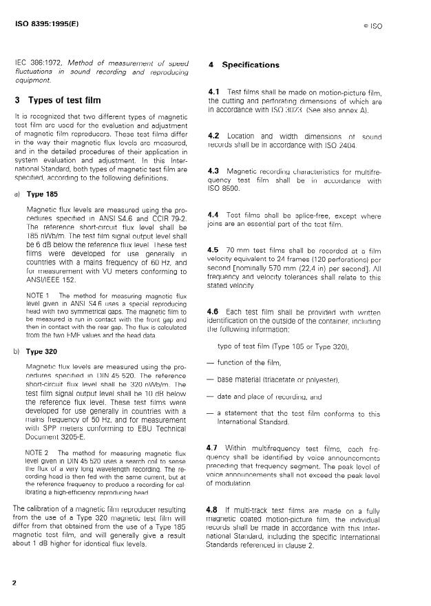 Keywords: ISO 8395:1995, cinematography, 70 mm, magnetic sound test films, azimuth alignment, frequency response, flutter, Type 185, Type 320.