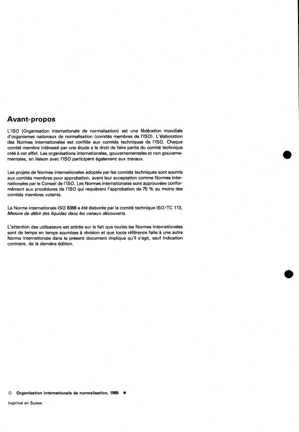 ISO 8368:1985 is a standard published by the International Organization for Standardization (ISO). Its full title is "Liquid flow measurement in open channels — Guidelines for the selection of flow gauging structures". This standard covers: Liquid flow measurement in open channels — Guidelines for the selection of flow gauging structures