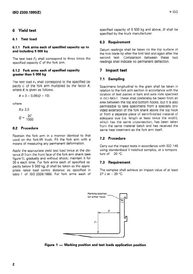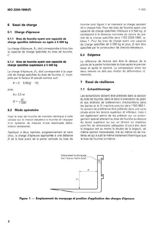 ISO 2328:1993, Chariots élévateurs à fourche - Bras et l’acheteur, les essais prescrits aux articles 6 et 7