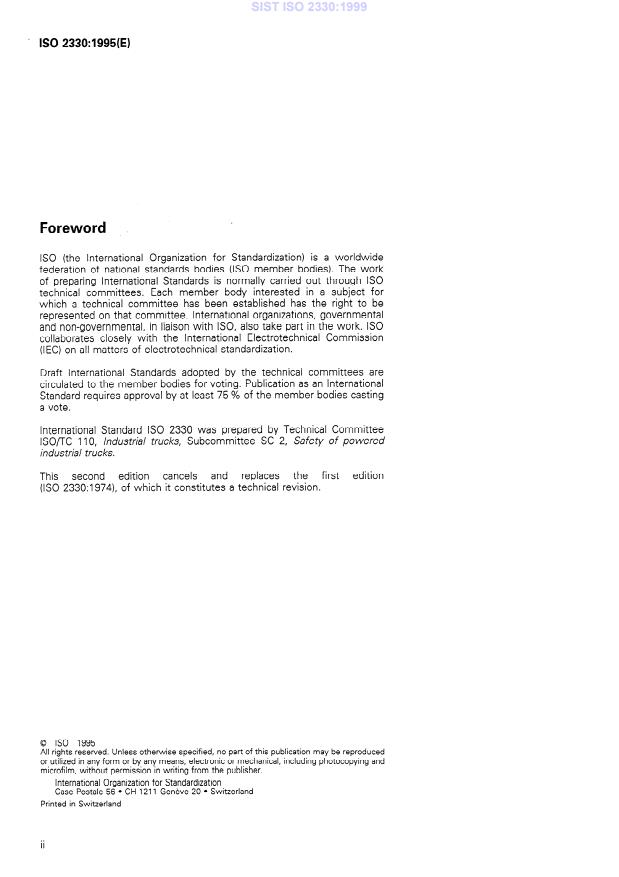 ISO 2330:1995 is classified under the following ICS (International Classification for Standards) categories: 53.060 - Industrial trucks. The ICS classification helps identify the subject area and facilitates finding related standards.