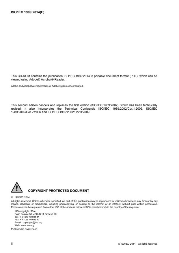 This CD-ROM contains the publication ISO/IEC 1989:2014 in portable document format (PDF), which can be
