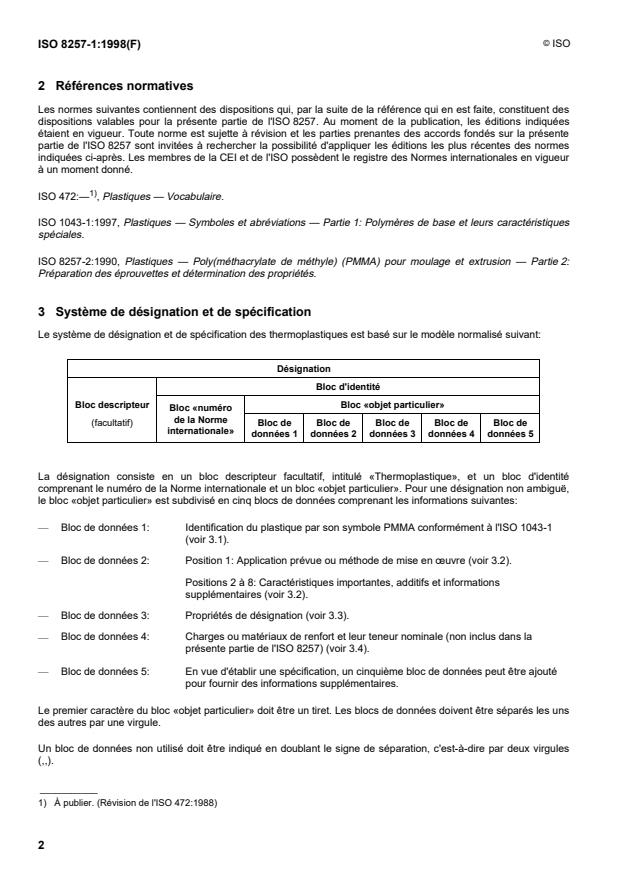 1.1 La présente partie de l'ISO 8257 établit un système de désignation pour les matériaux thermoplastiques à