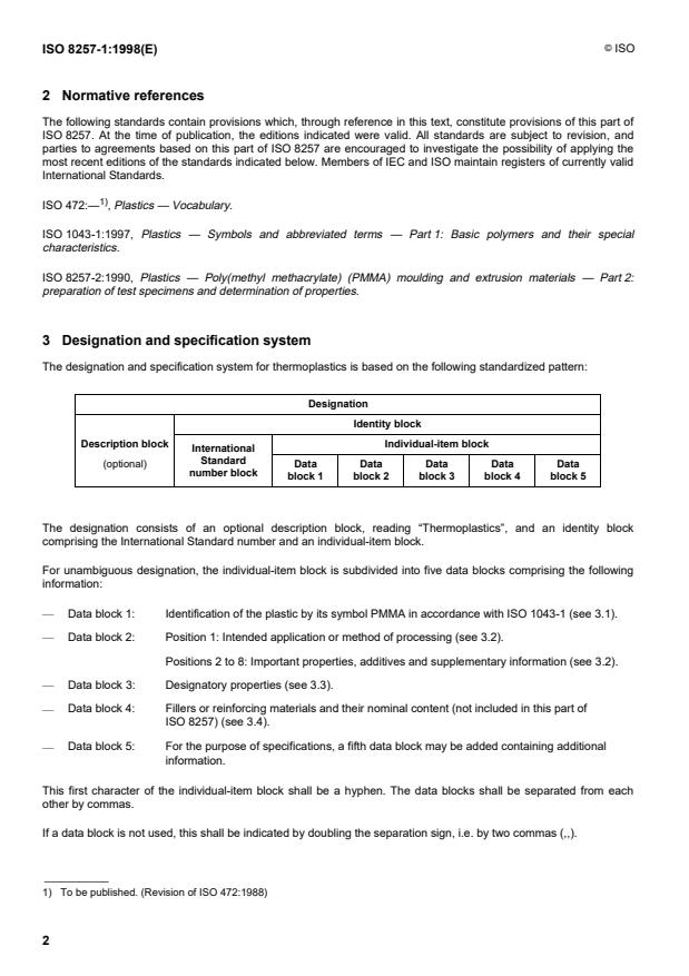 1.1 This part of ISO 8257 establishes a system of designation for poly(methyl methacrylate) (PMMA) thermoplastic