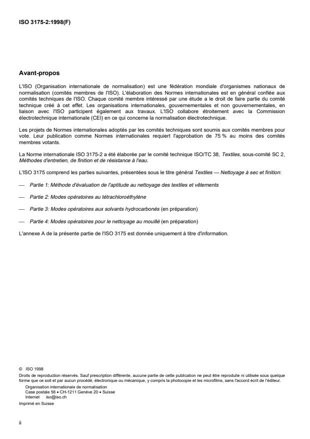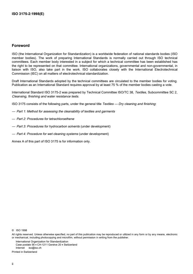 International Standard ISO 3175-2 was prepared by Technical Committee ISO/TC 38, Textiles, Subcommittee SC 2,