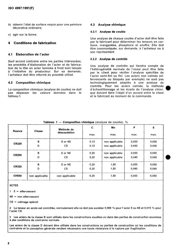 La composition chimique (analyse de coulée) ne doit d’échantillonnage et les écarts de l’analyse chimi- 0