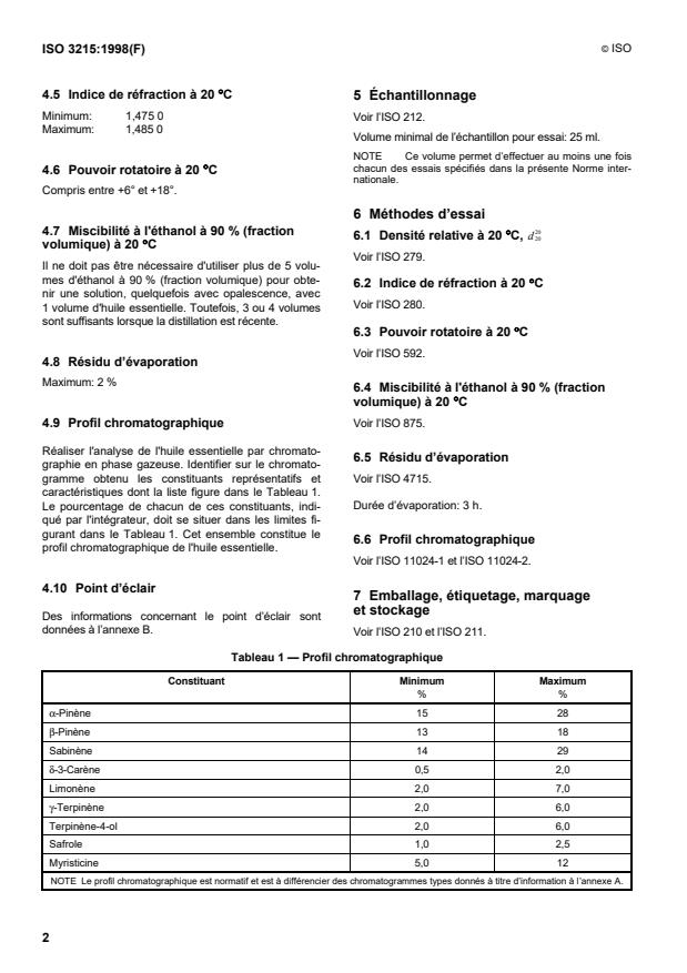 ISO 3215:1998 - Oil of nutmeg, Indonesian type (Myristica fragrans Houtt.)
