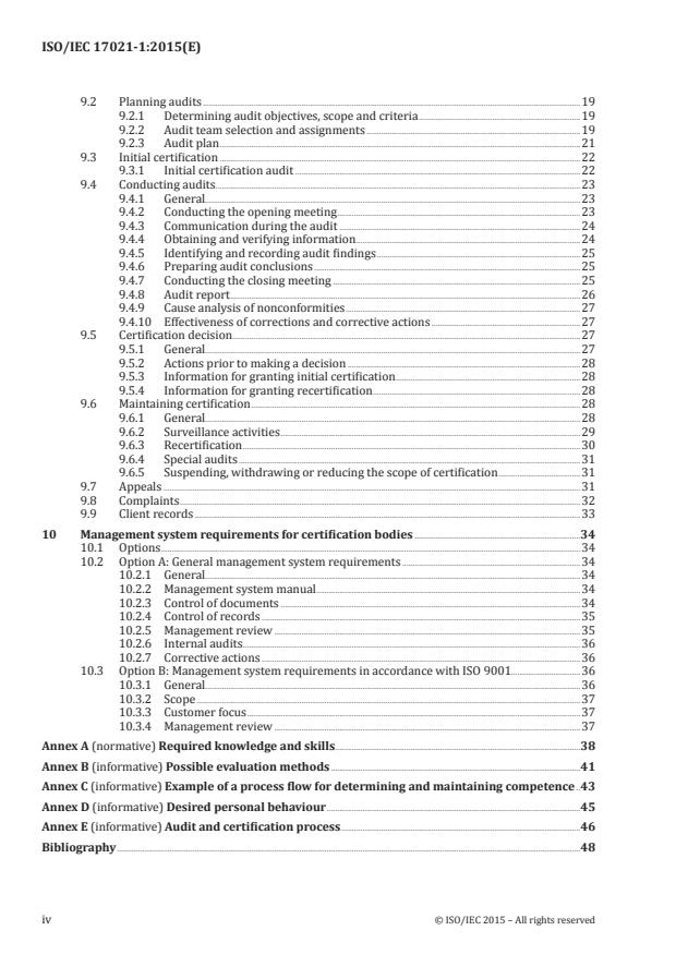 ISO/IEC 17021-1:2015 organizes requirements into logical clauses covering the full certification lifecycle: