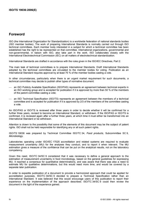 ISO/TS 19036:2006 - Microbiology of food and animal feeding stuffs -- Guidelines for the estimation of measurement uncertainty for quantitative determinations