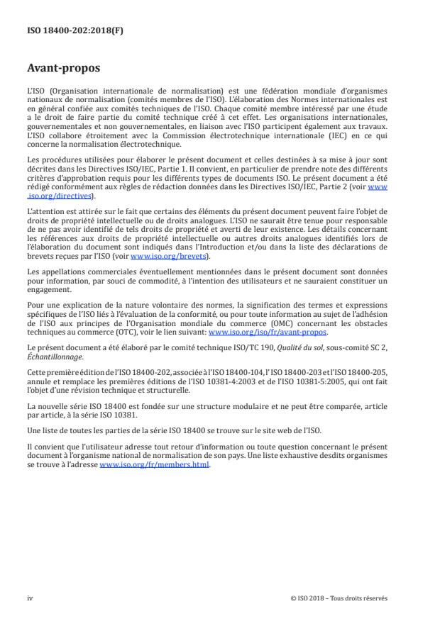 ISO 18400-202:2018 is a standard published by the International Organization for Standardization (ISO). Its full title is "Soil quality — Sampling — Part 202: Preliminary investigations". This standard covers: This document provides guidance on the design and execution of preliminary investigations comprising desk studies and site reconnaissance, and where appropriate, preliminary risk assessment. It is applicable whenever sampling exercises or investigations are to be carried out to determine soil quality.