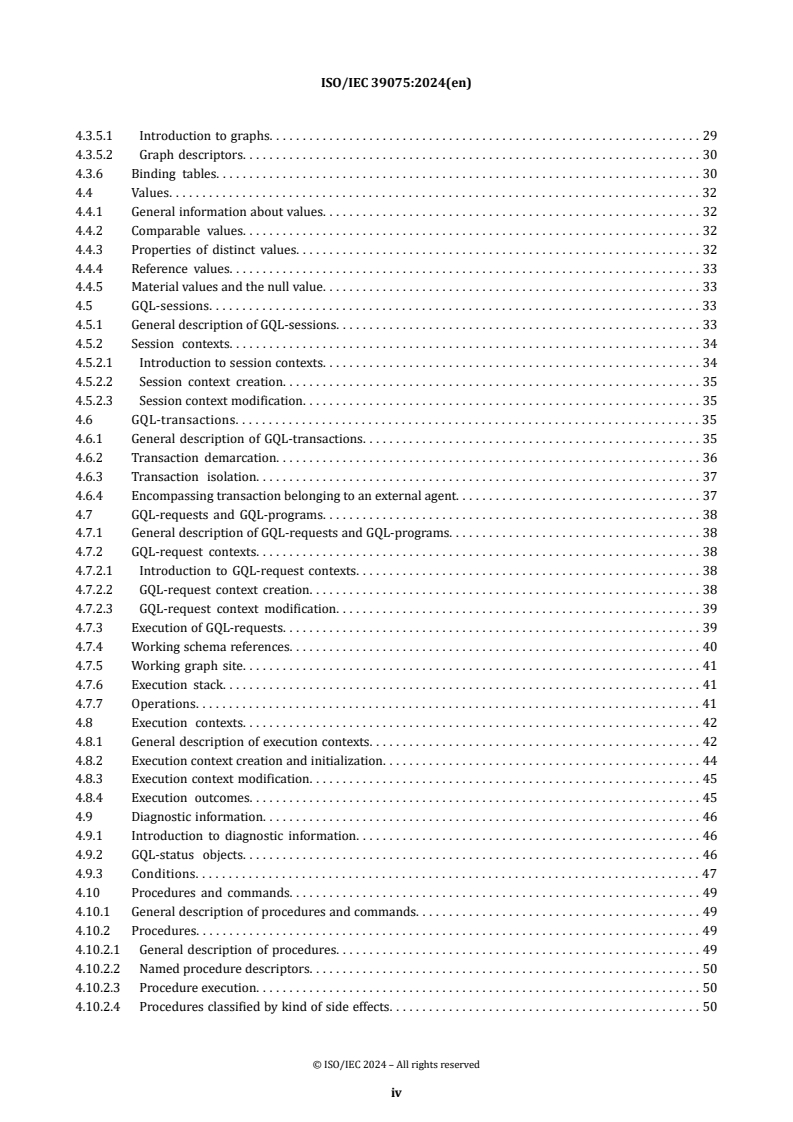 ISO/IEC 39075:2024 covers comprehensive language and runtime concepts relevant to property-graph databases. Major topics include: